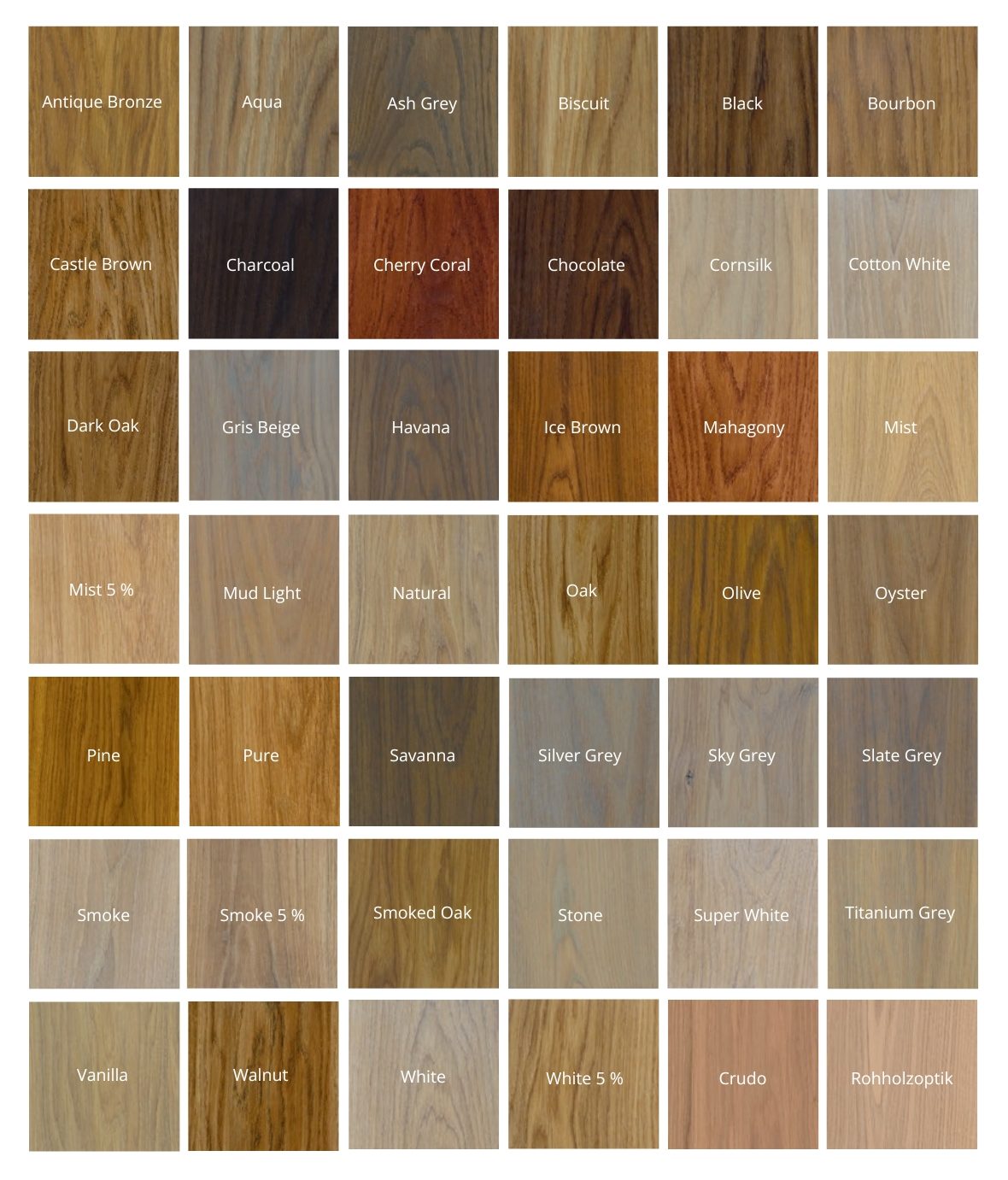 Die Dielenoberfläche wird mit einem hochwertigen Öl-System versiegelt, das einen dauerhaften Schutz bietet. Das Öl besteht zu 100 % aus natürlichen Inhaltsstoffen und ist komplett lösungsmittelfrei. Sie können aus insgesamt 42 Farbölen wählen.